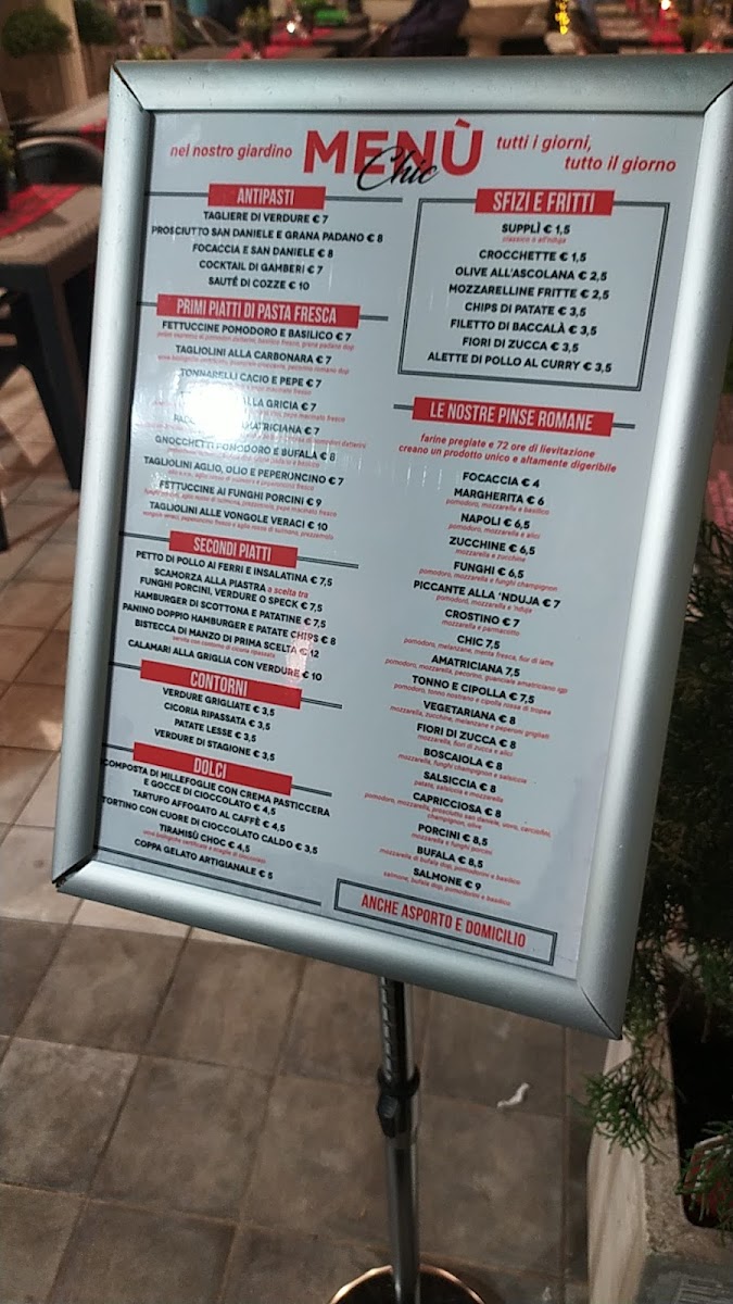 Chic / Caffetteria, Pasticceria, Cucina Espressa, Pizza Menu